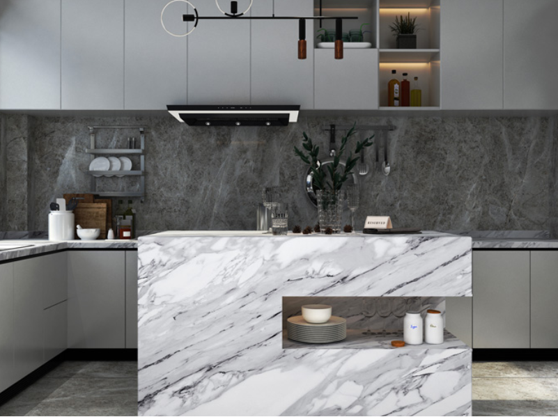 家居空間的墻面和地面都需要大面積鋪貼,大規格的巖板紋理展現的更加的完整,在實際鋪貼及運用過程中可塑性和變化性更大,也減少了鋪貼及施工過程中的留縫等環節。