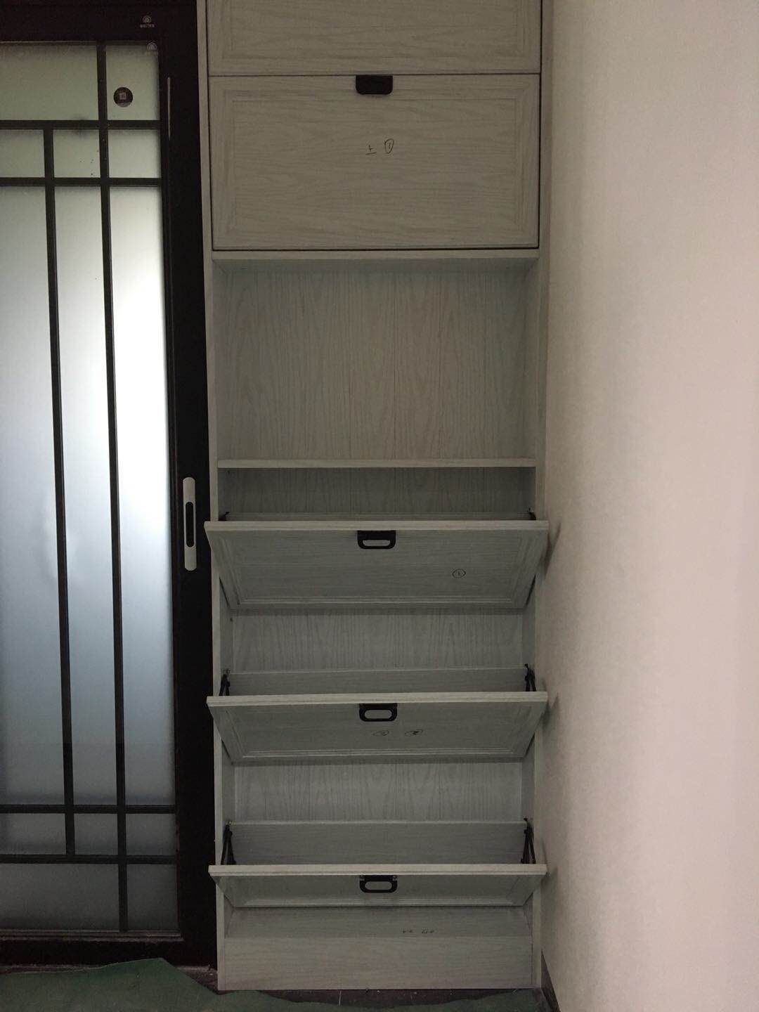 是這幾年比較流行的一種款式,可以根據客戶自身需求設計出一款鞋柜,按照客戶的習慣將鞋子和雜物收納起來。
